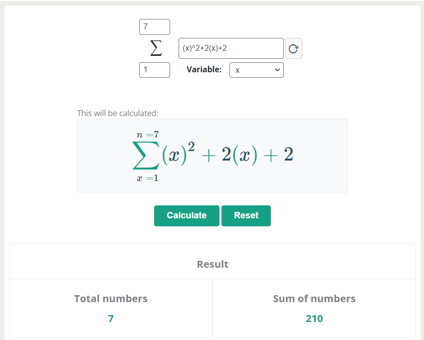 You can use a summation calculator to get rid of the above time-consuming and lengthy calculations.